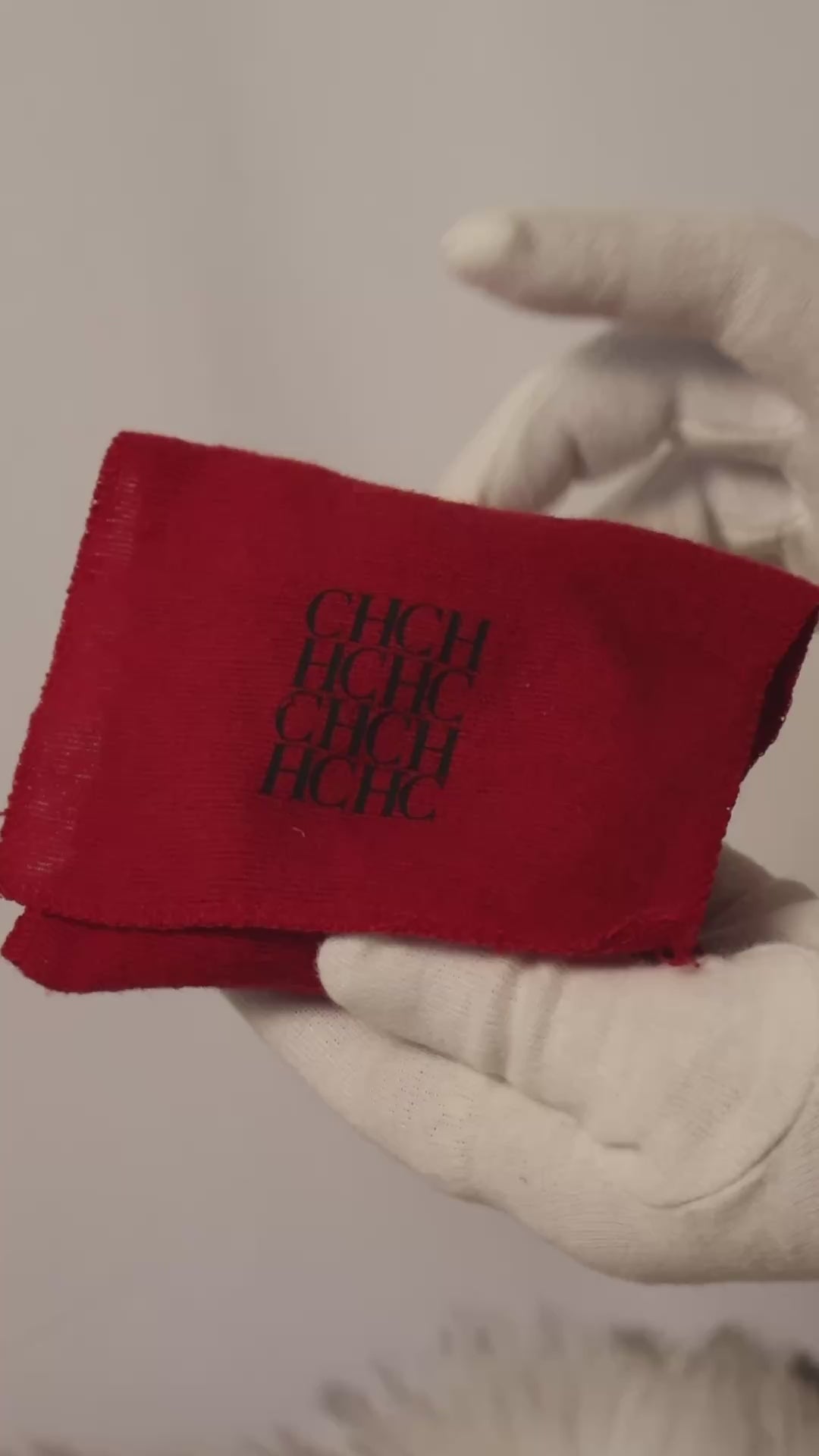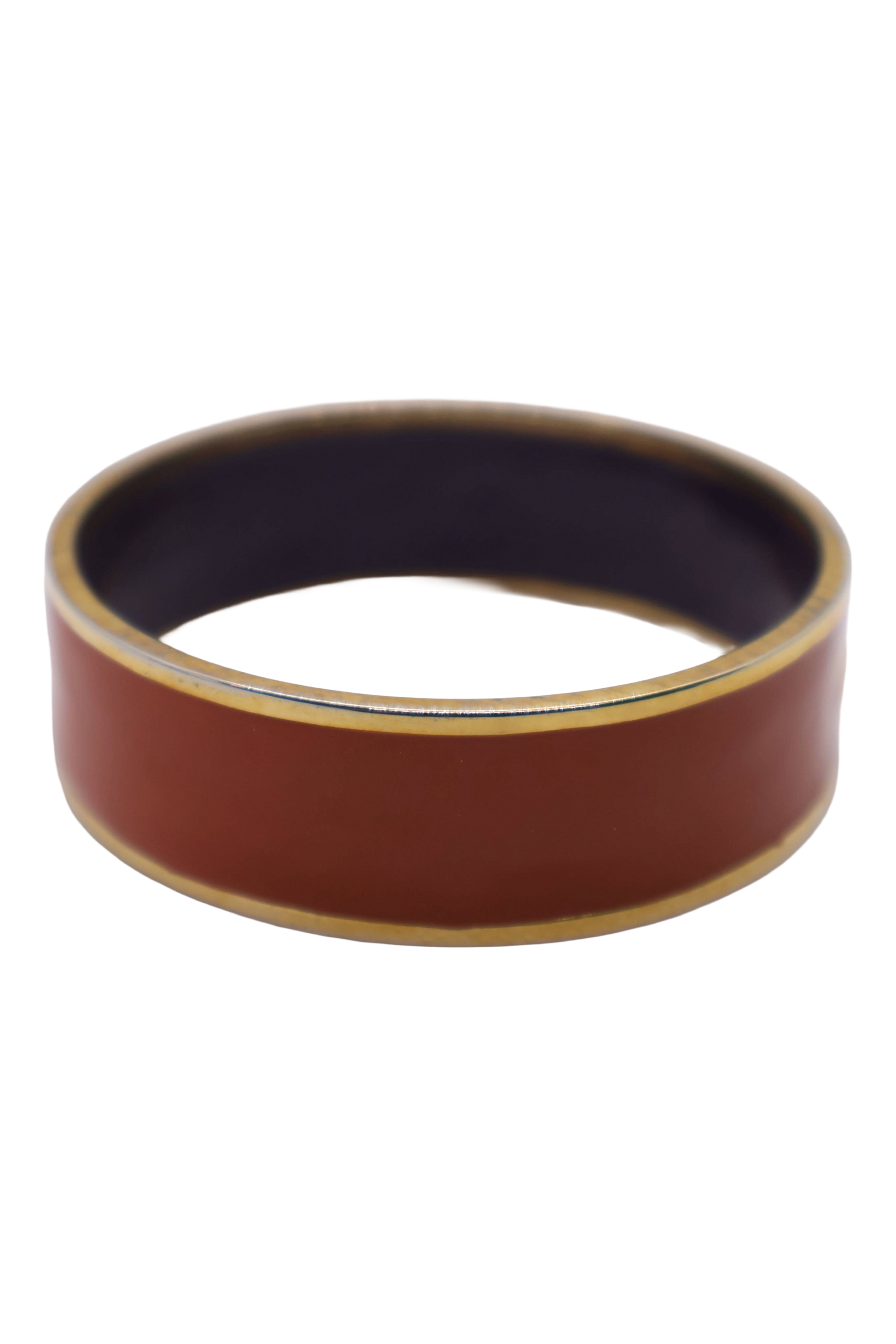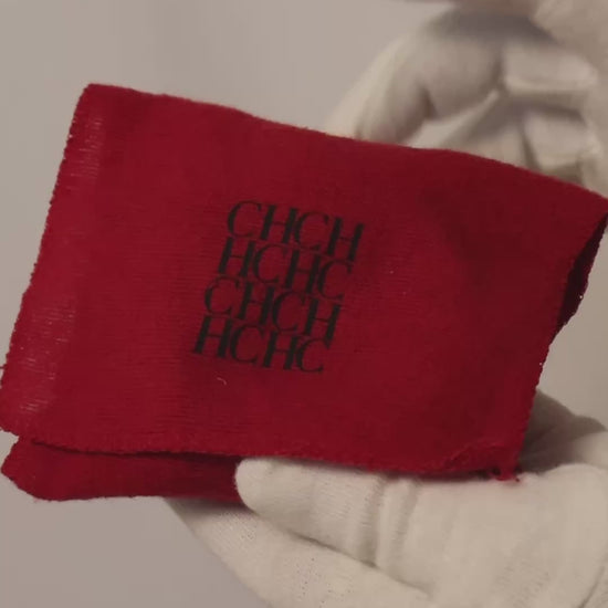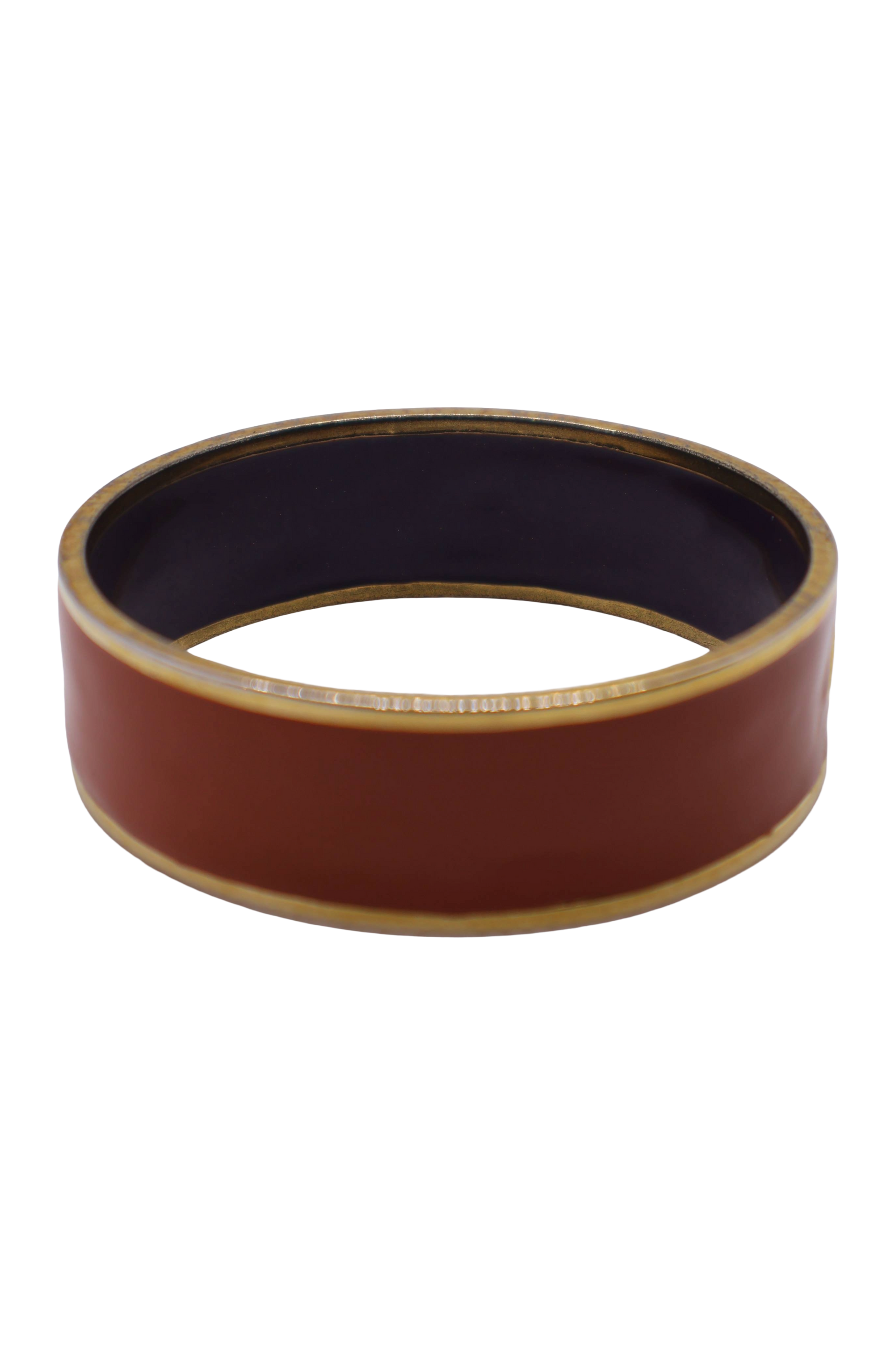 Elegant Carolina Herrera orange bangle bracelet, featuring burgundy enamel, a gold-tone rim, and the iconic CH logo. In excellent condition and comes with its original dustbag. A sophisticated detail that elevates any outfit.