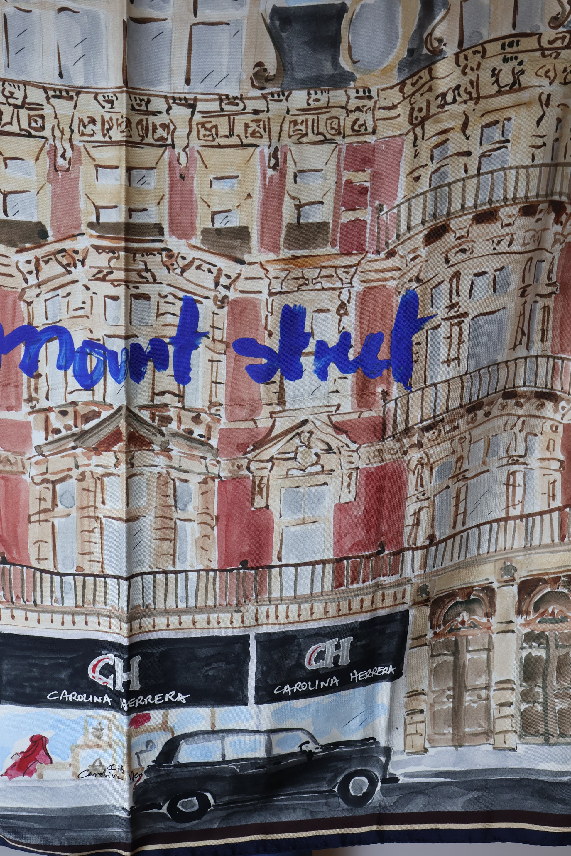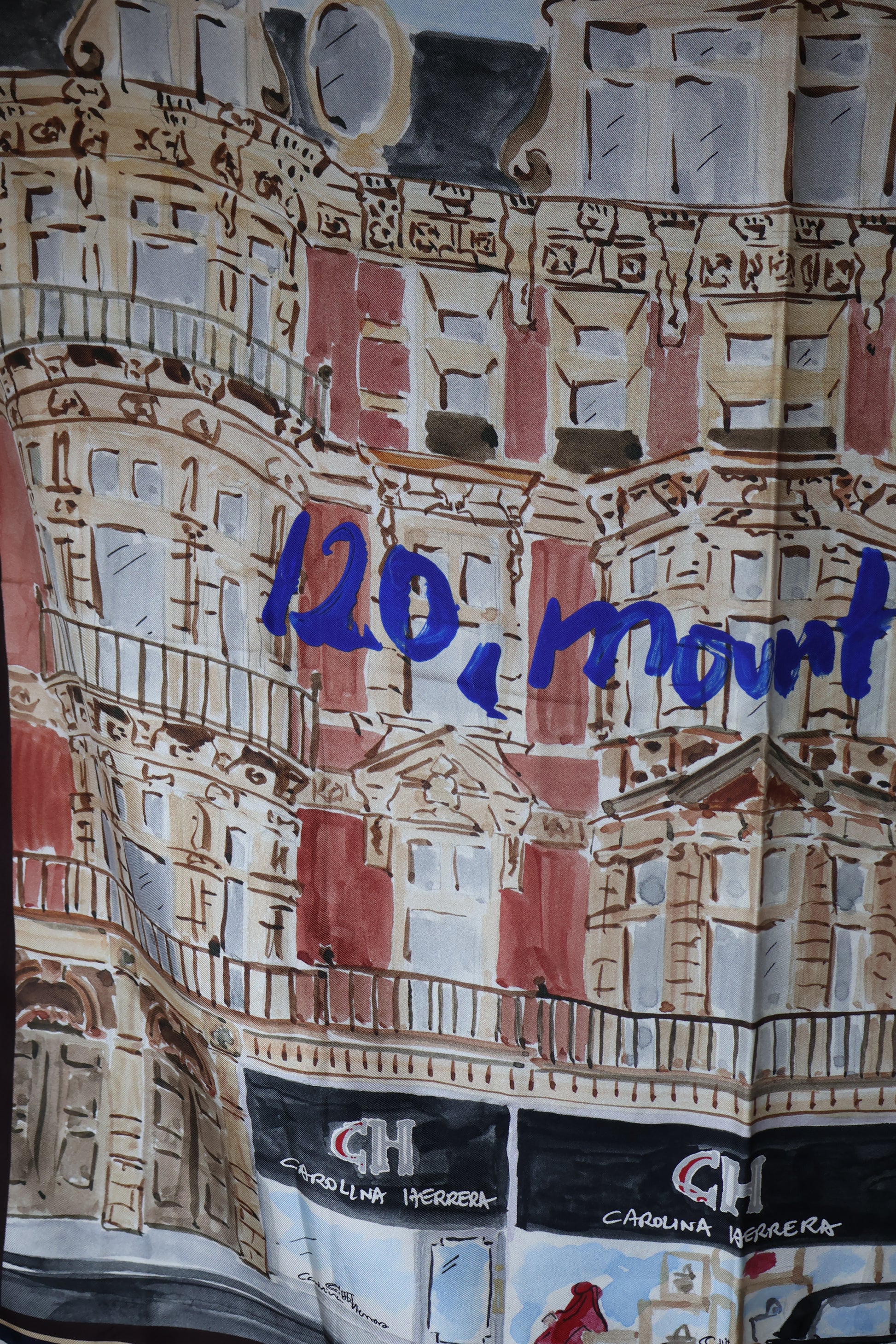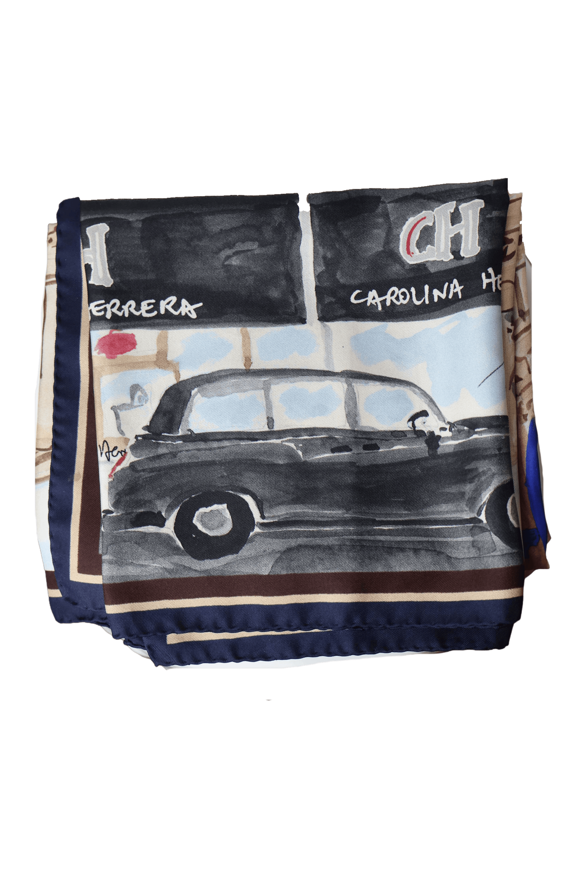 Crafted from silk, this Carolina Herrera Limited Edition Scarf showcases a unique printed design featuring the brand’s first boutique in London, adding both sophistication and heritage to any look.