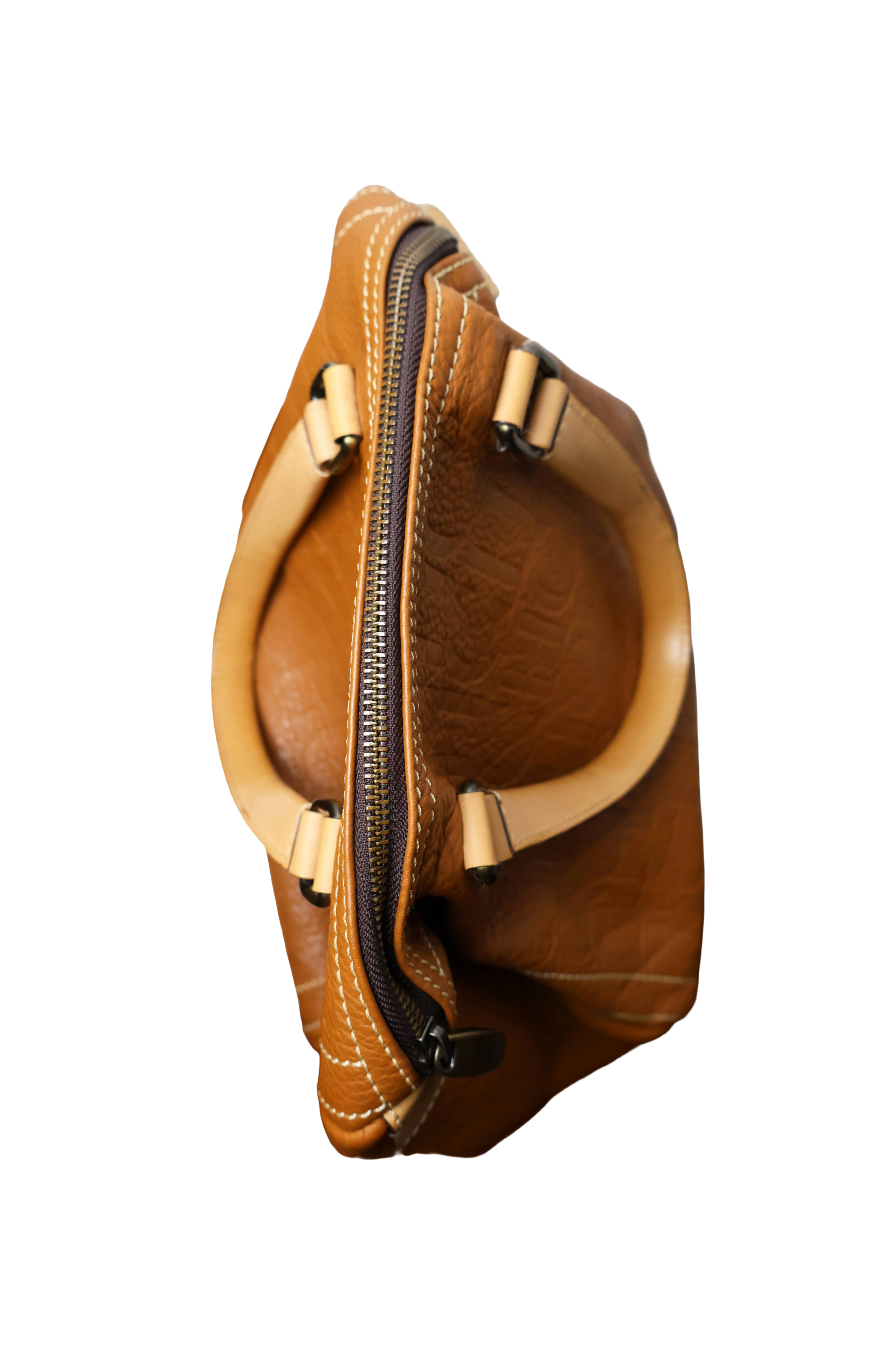 Elegant and practical, this Carolina Herrera top handle bag in brown leather with bronze hardware is perfect for any outfit. In excellent condition and ready to accompany you everywhere.
