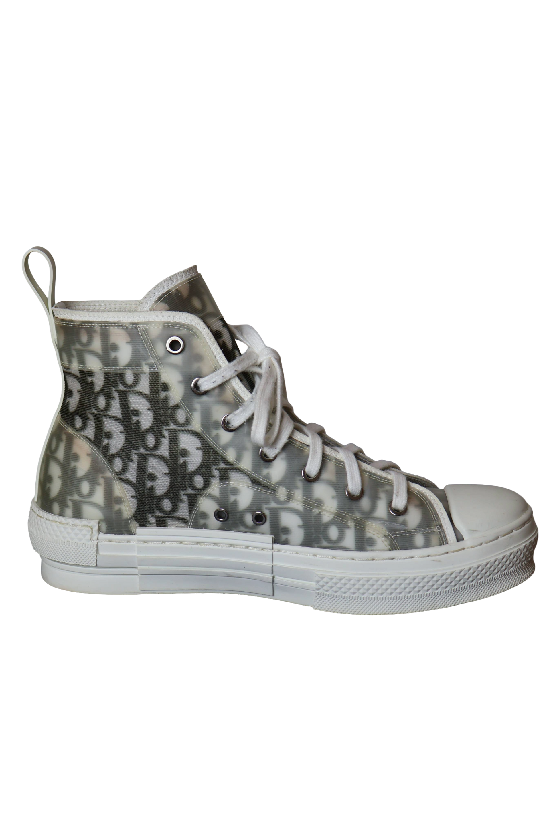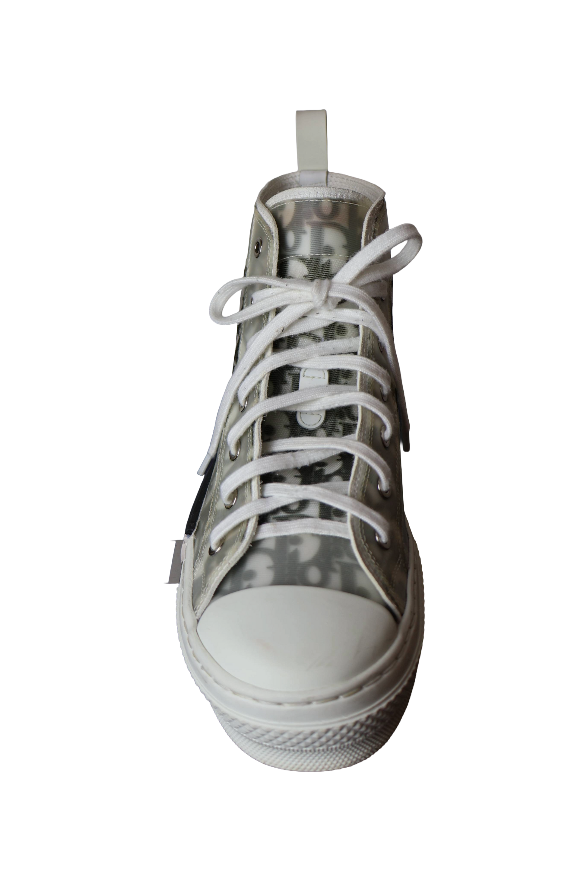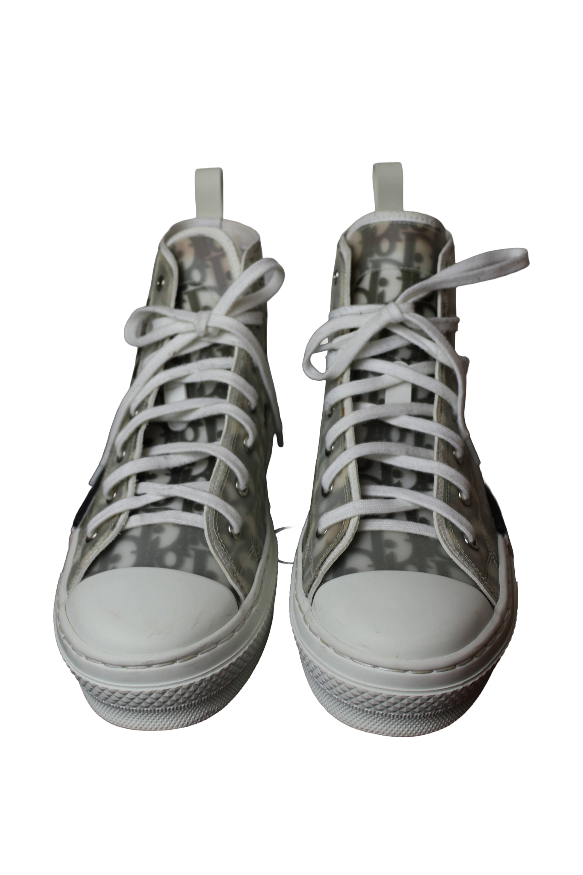 Dior B23 High-top Sneakers in Dior Oblique coated canvas, featuring silver hardware. These stylish sneakers are EU size 42, in excellent condition, and come complete with box, dustbag, extra shoelace, and authenticity card.