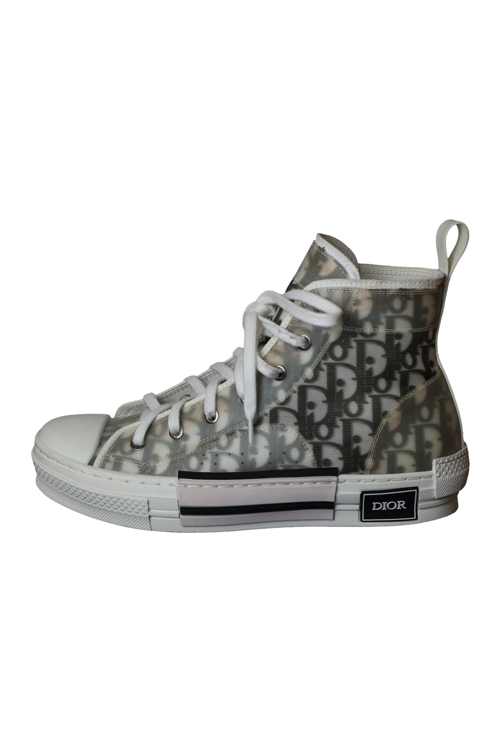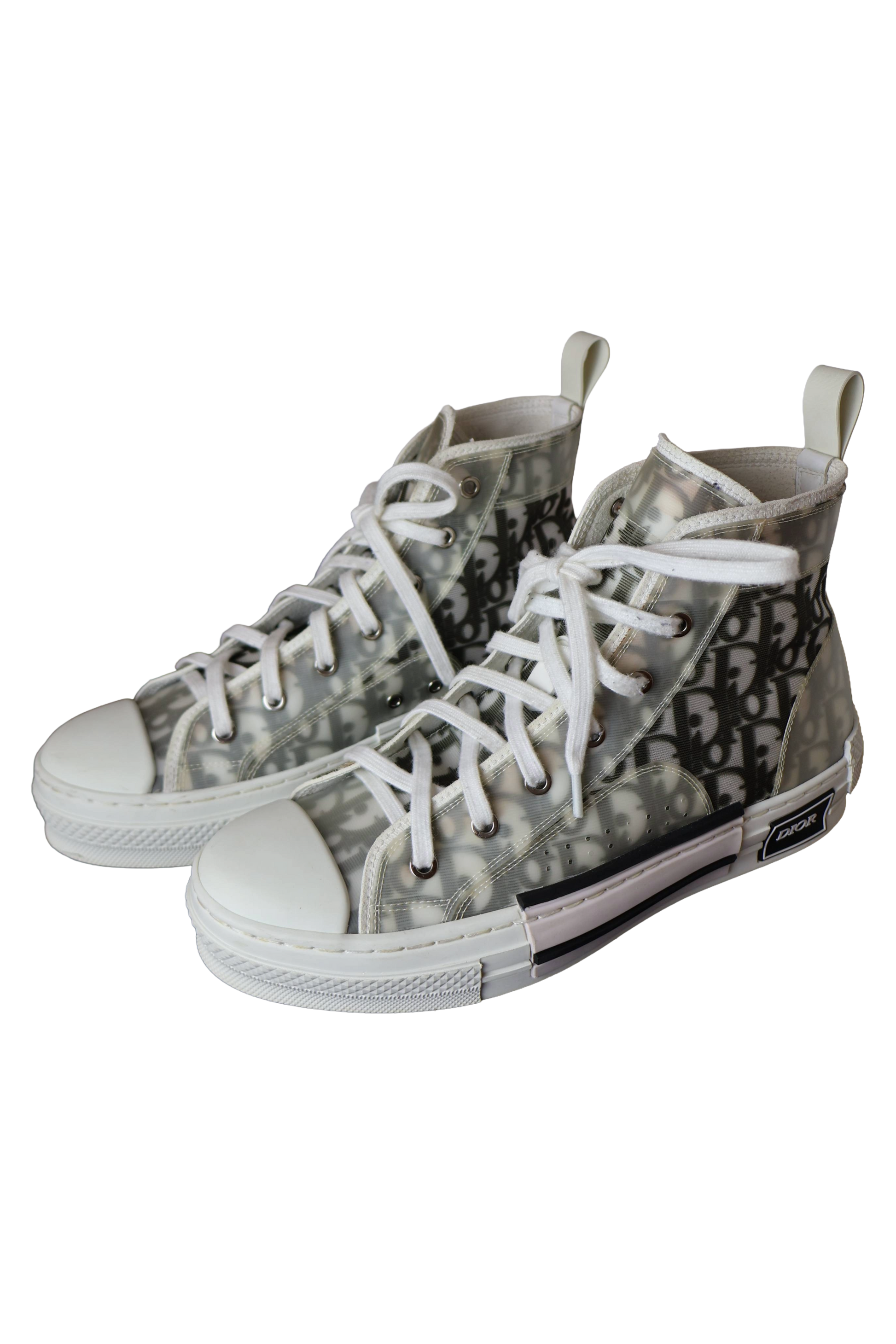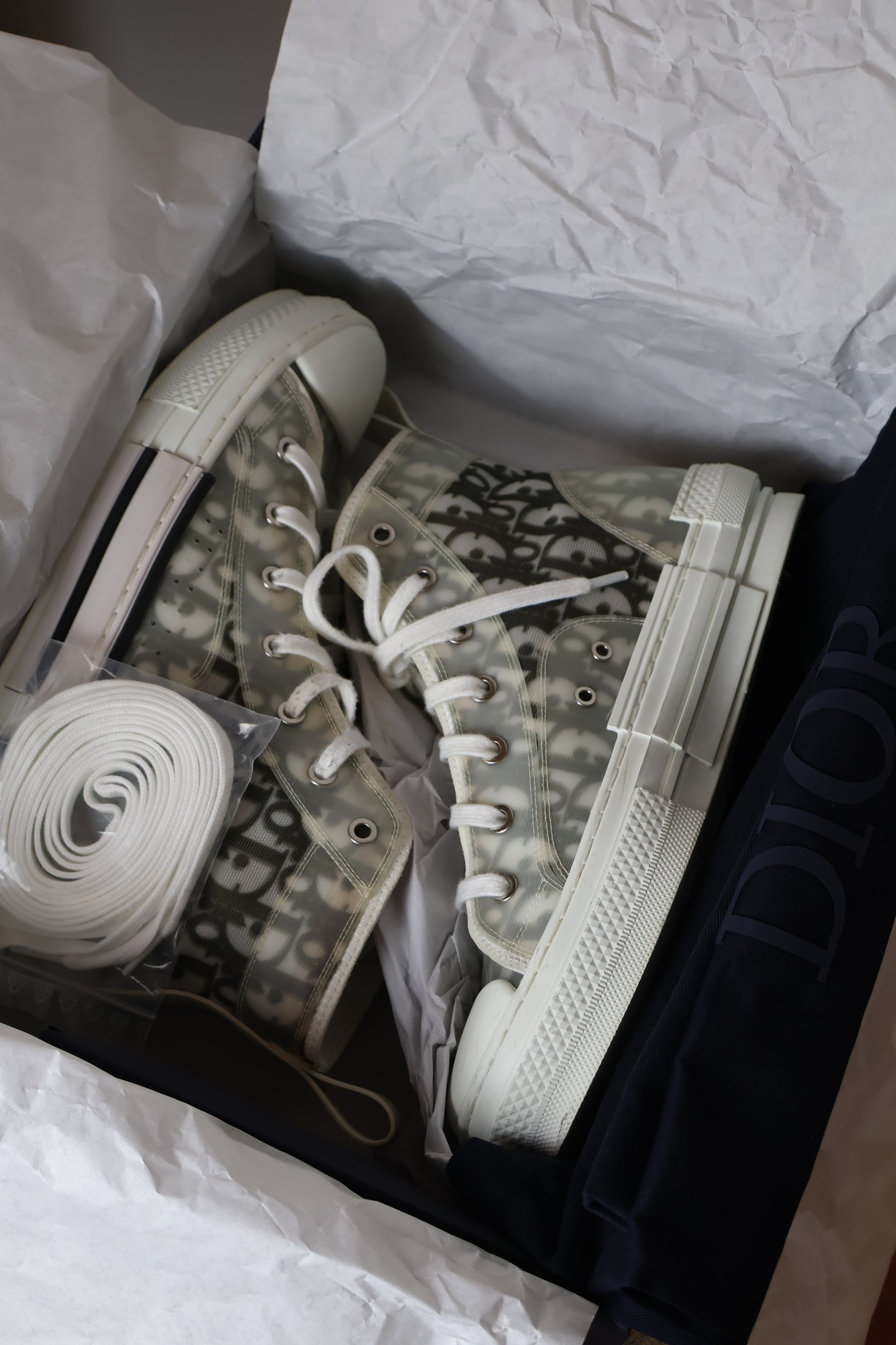 Dior B23 High-top Sneakers in Dior Oblique coated canvas, featuring silver hardware. These stylish sneakers are EU size 42, in excellent condition, and come complete with box, dustbag, extra shoelace, and authenticity card.