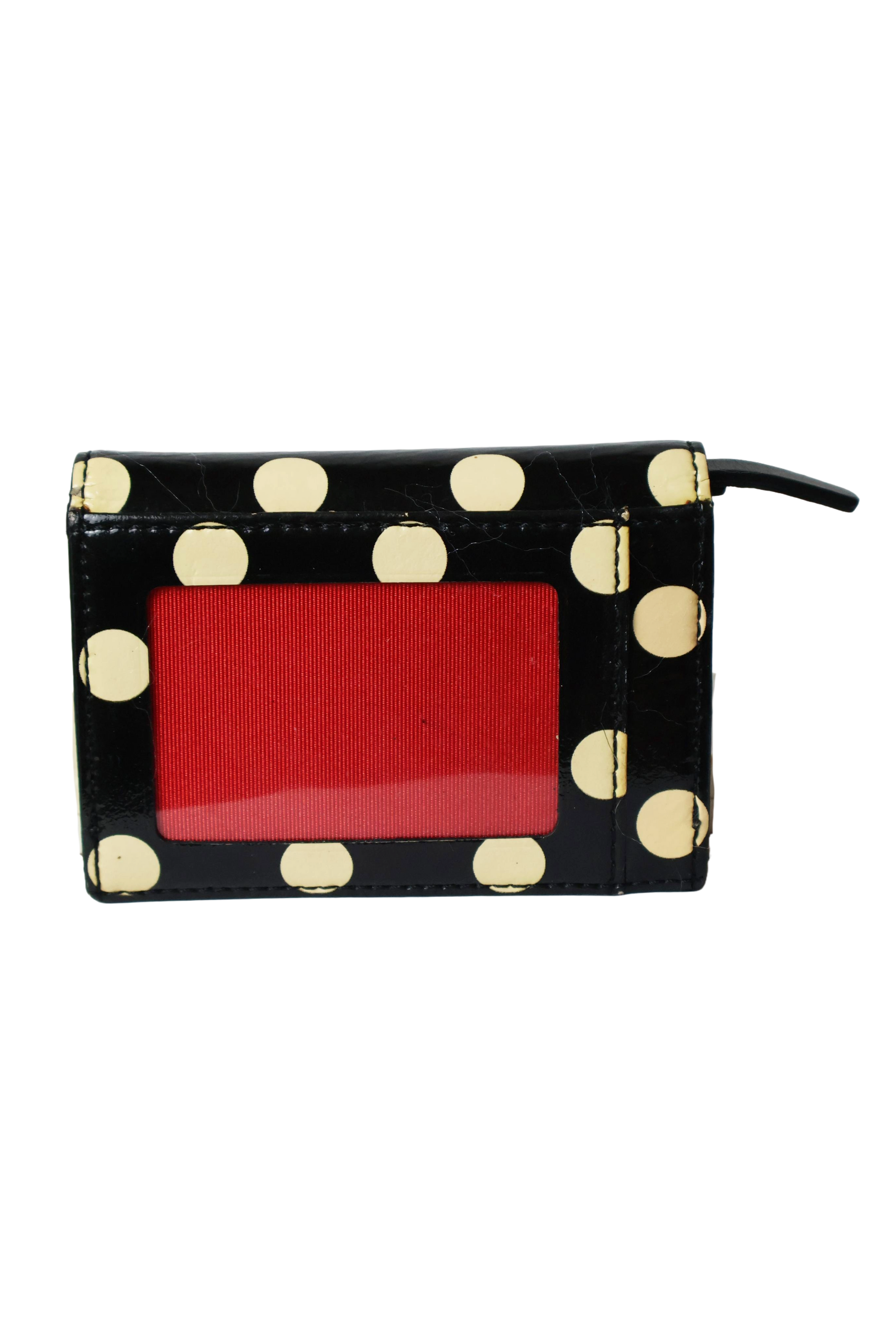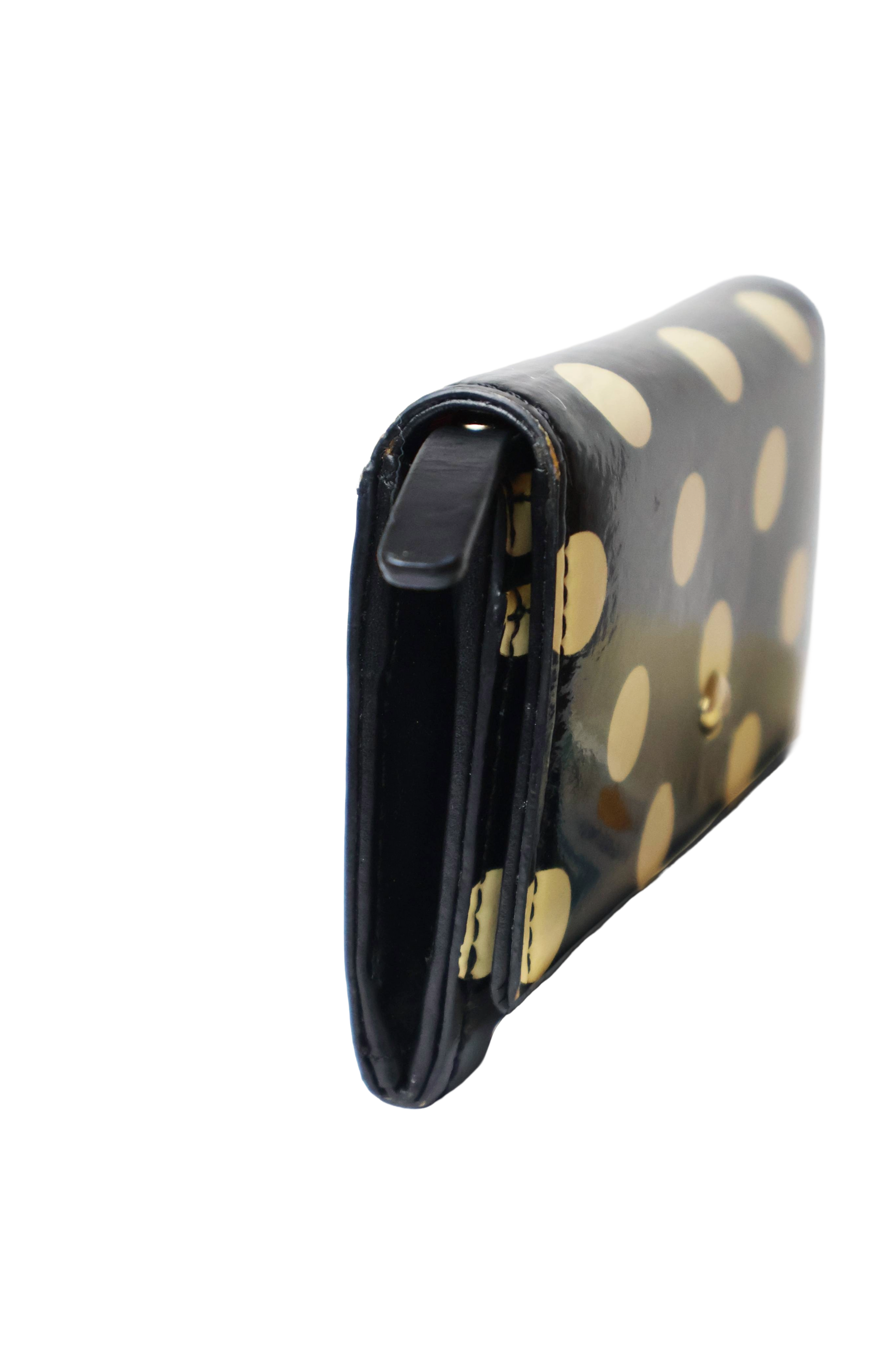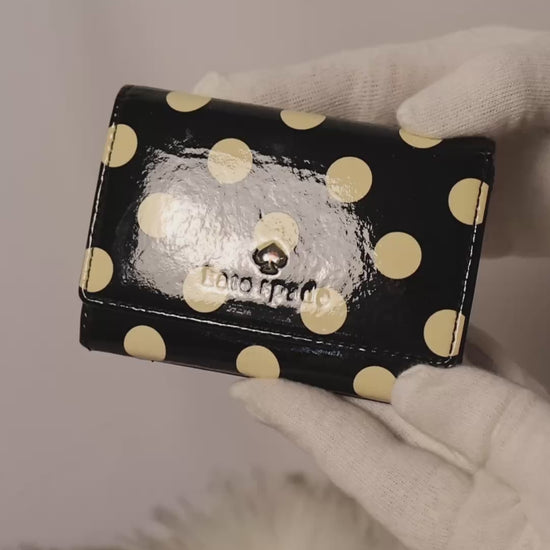This elegant Kate Spade wallet is crafted from cowhide with unframed spot print and patent trim, complemented by 14-karat light gold-plated hardware. Measuring 7.9 x 10.9 x 2 cm, it is in excellent condition and combines refined style with functionality.