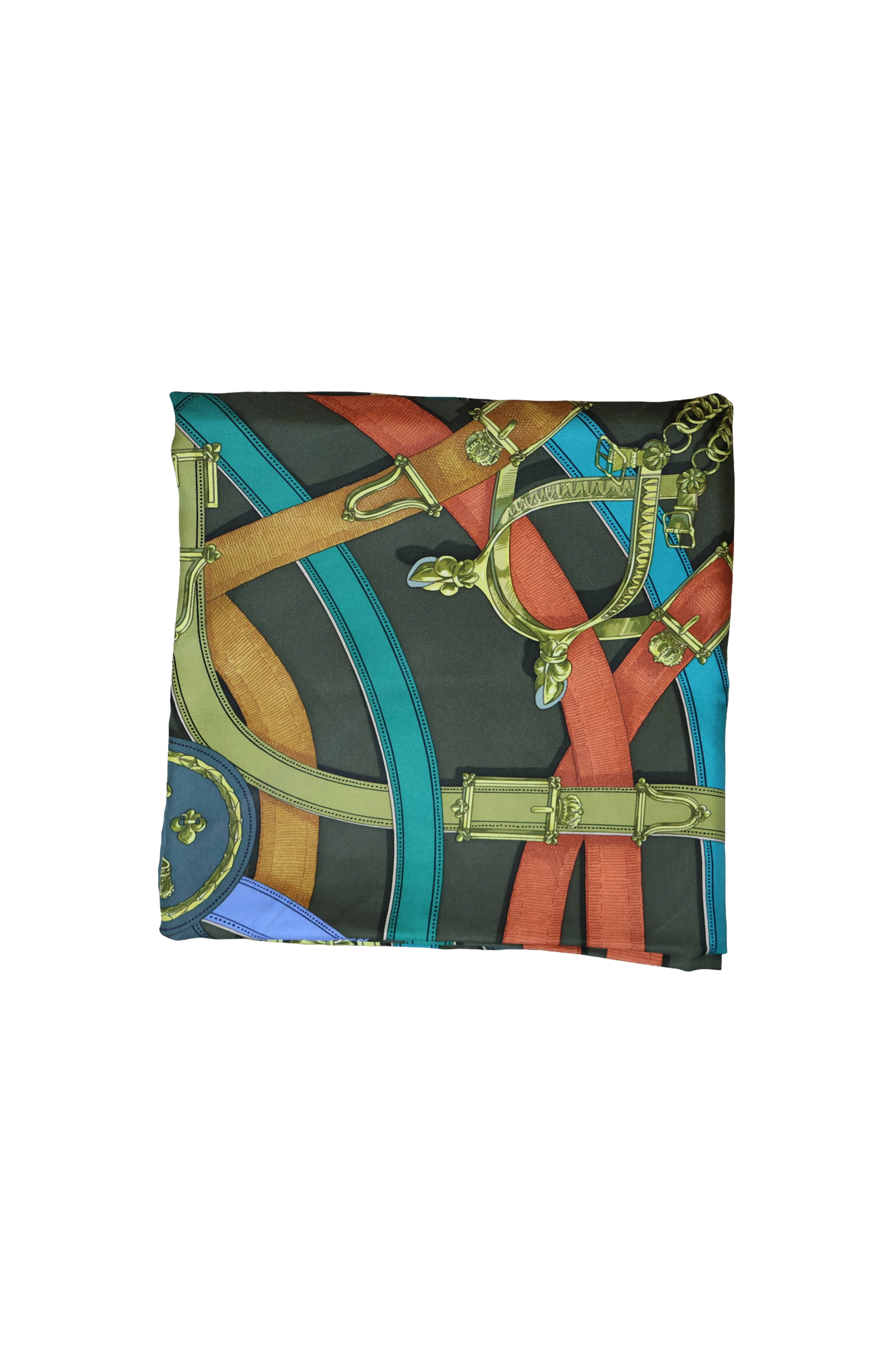 Measuring 90 cm x 90 cm, it offers versatile styling options. The scarf is in excellent condition.
