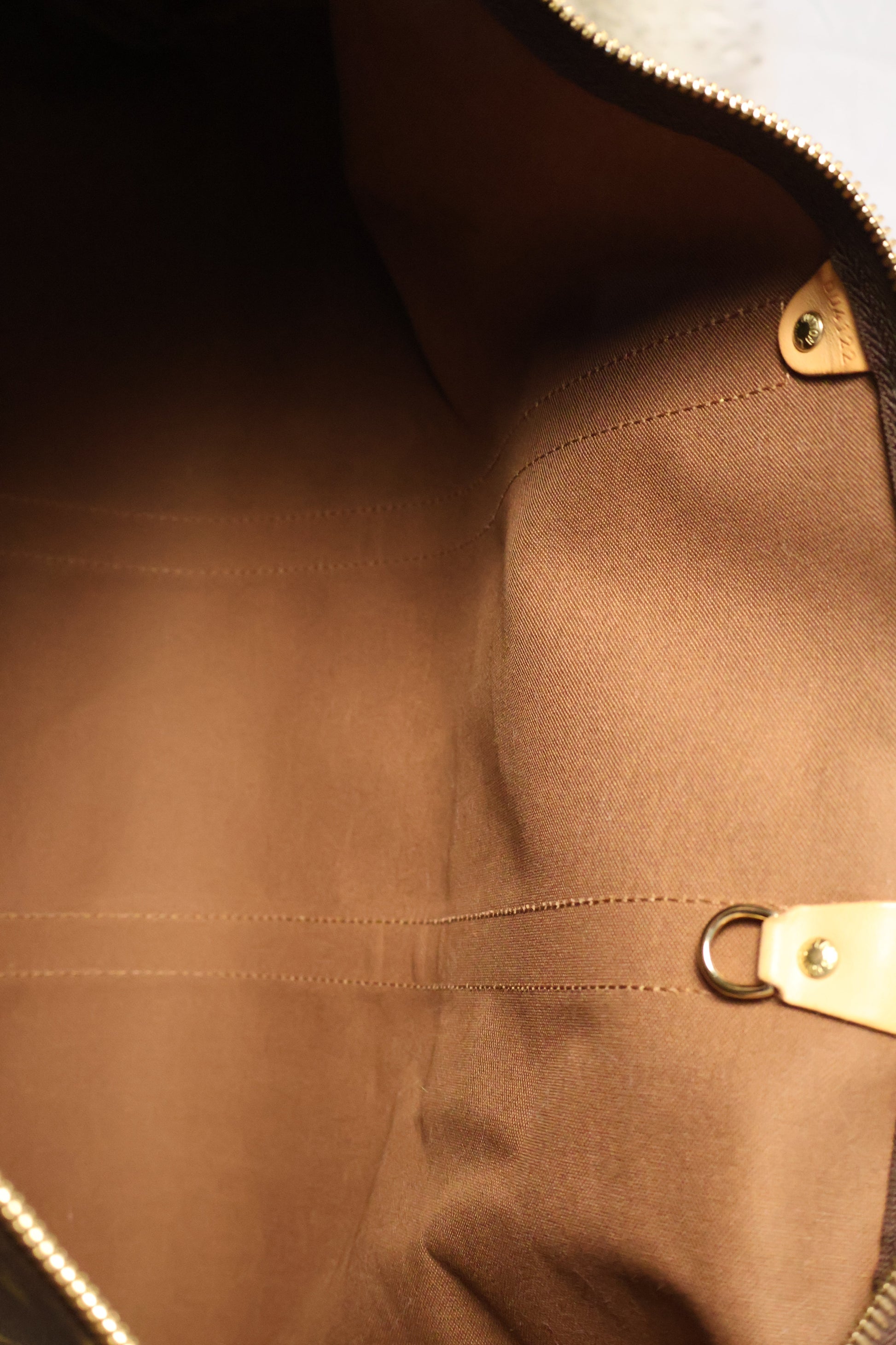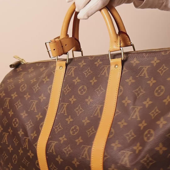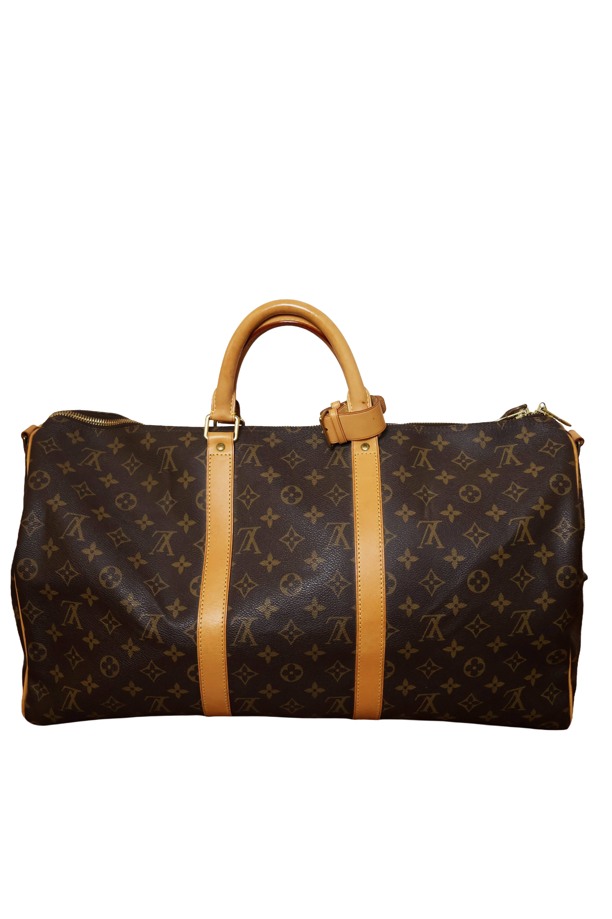 The Louis Vuitton Keepall 50 is a timeless staple of the Maison. Crafted from iconic Monogram Canvas with natural Vachetta leather trim, it features gold-tone hardware and rounded leather handles for comfortable carry. Perfect as a carry-on or for weekend getaways, it offers generous space with a secure top zip closure — the ideal blend of tradition, luxury, and practicality.