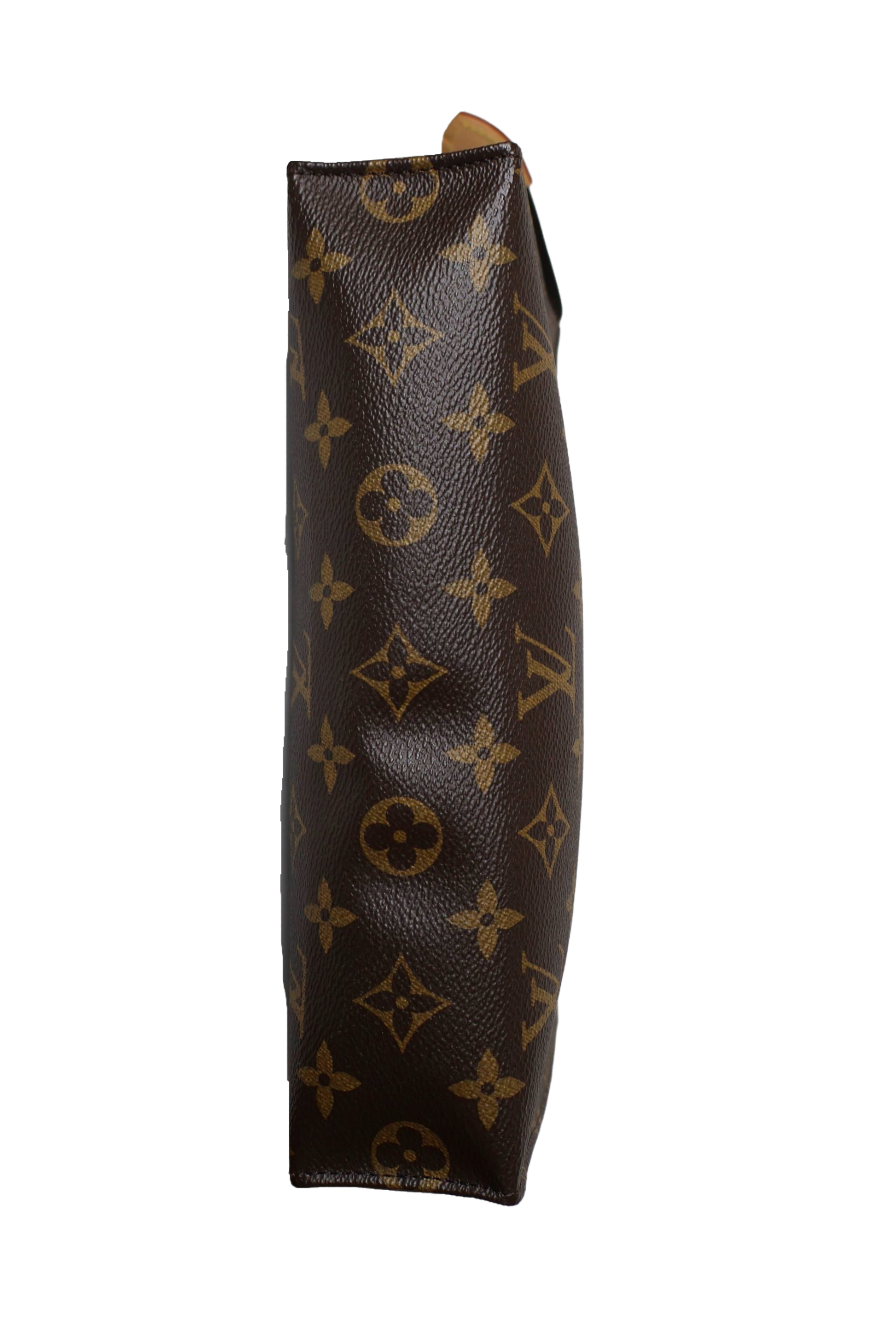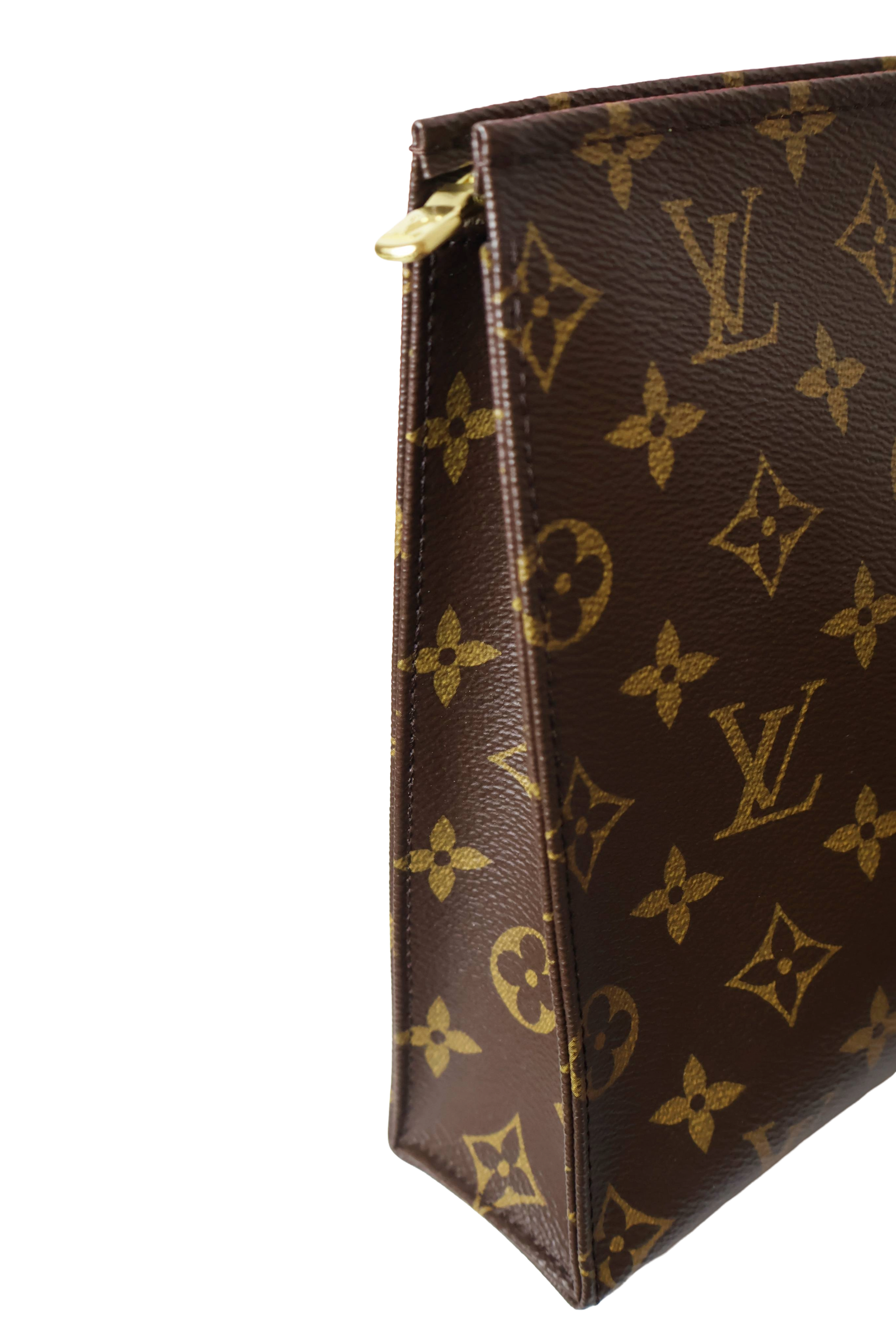 The Louis Vuitton Poche Toilette is crafted from signature Monogram coated canvas with black cowhide leather trim. Finished with gold-tone hardware, this piece is in excellent condition and comes with its dustbag.