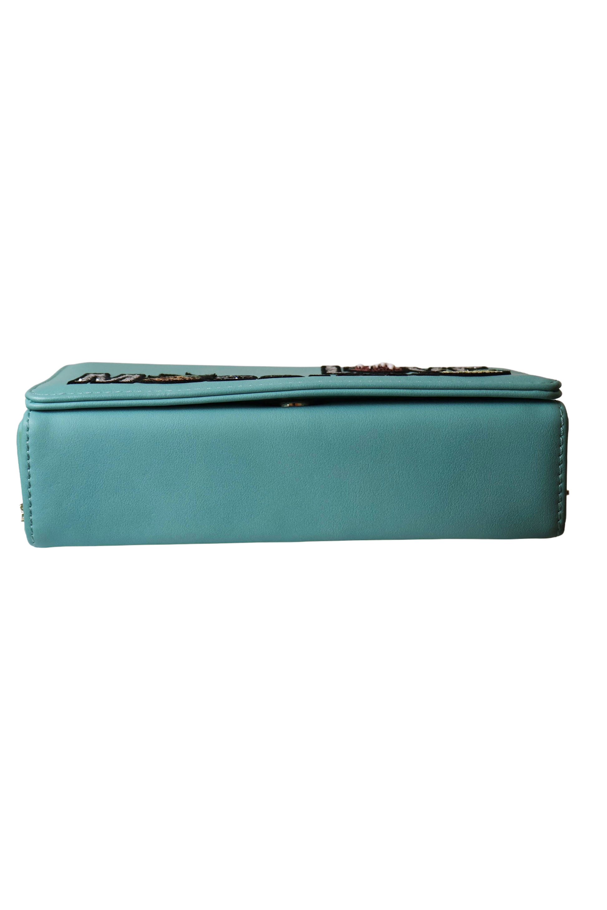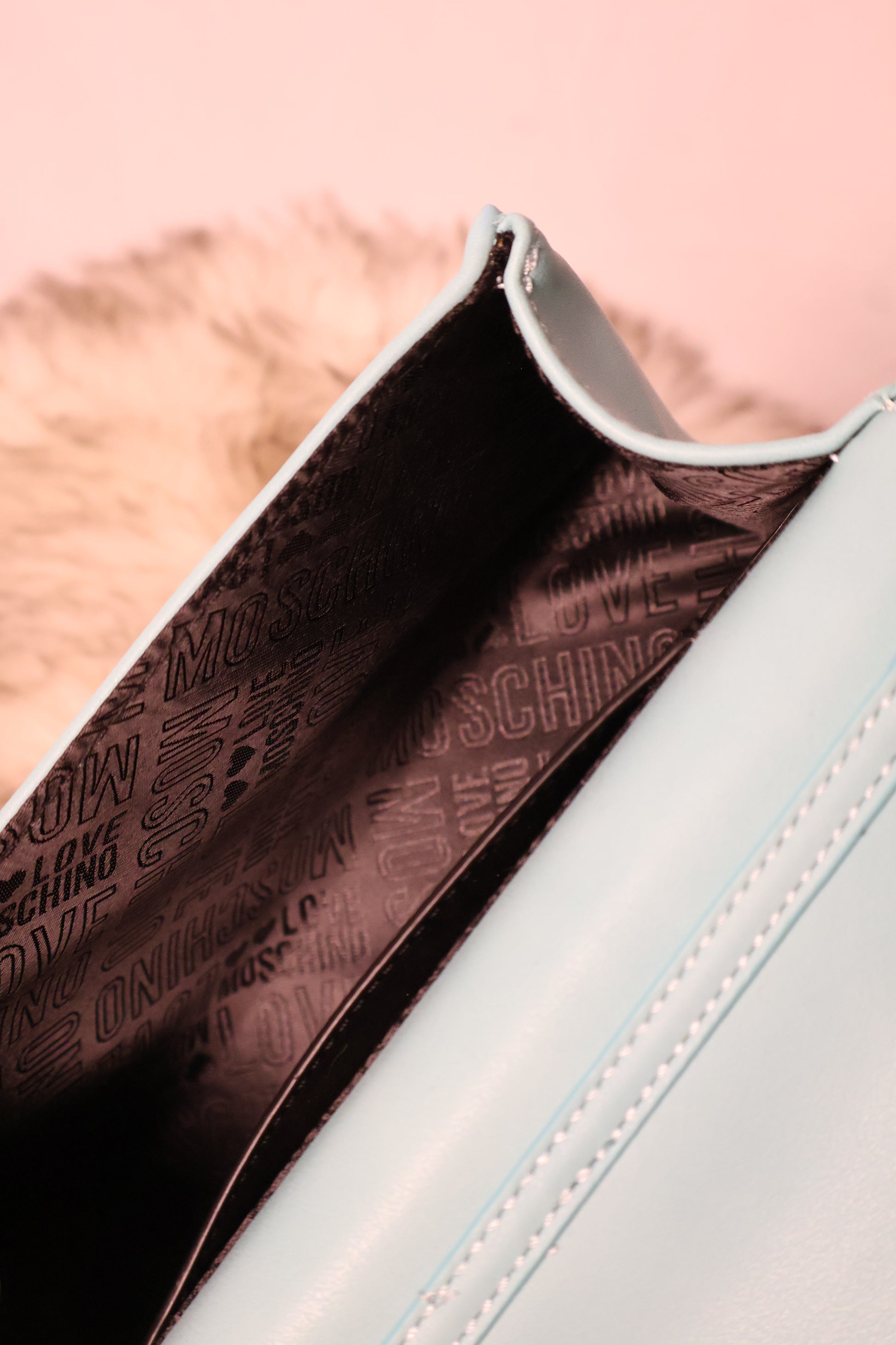 The Love Moschino Crossbody Bag is crafted from smooth blue leather and accented with gold-tone hardware for a refined finish. Compact yet practical, it measures 14 x 22 x 7 cm (Length x Height x Width), making it ideal for daily wear or evening outings. Presented in excellent condition, this piece comes complete with its dustbag.