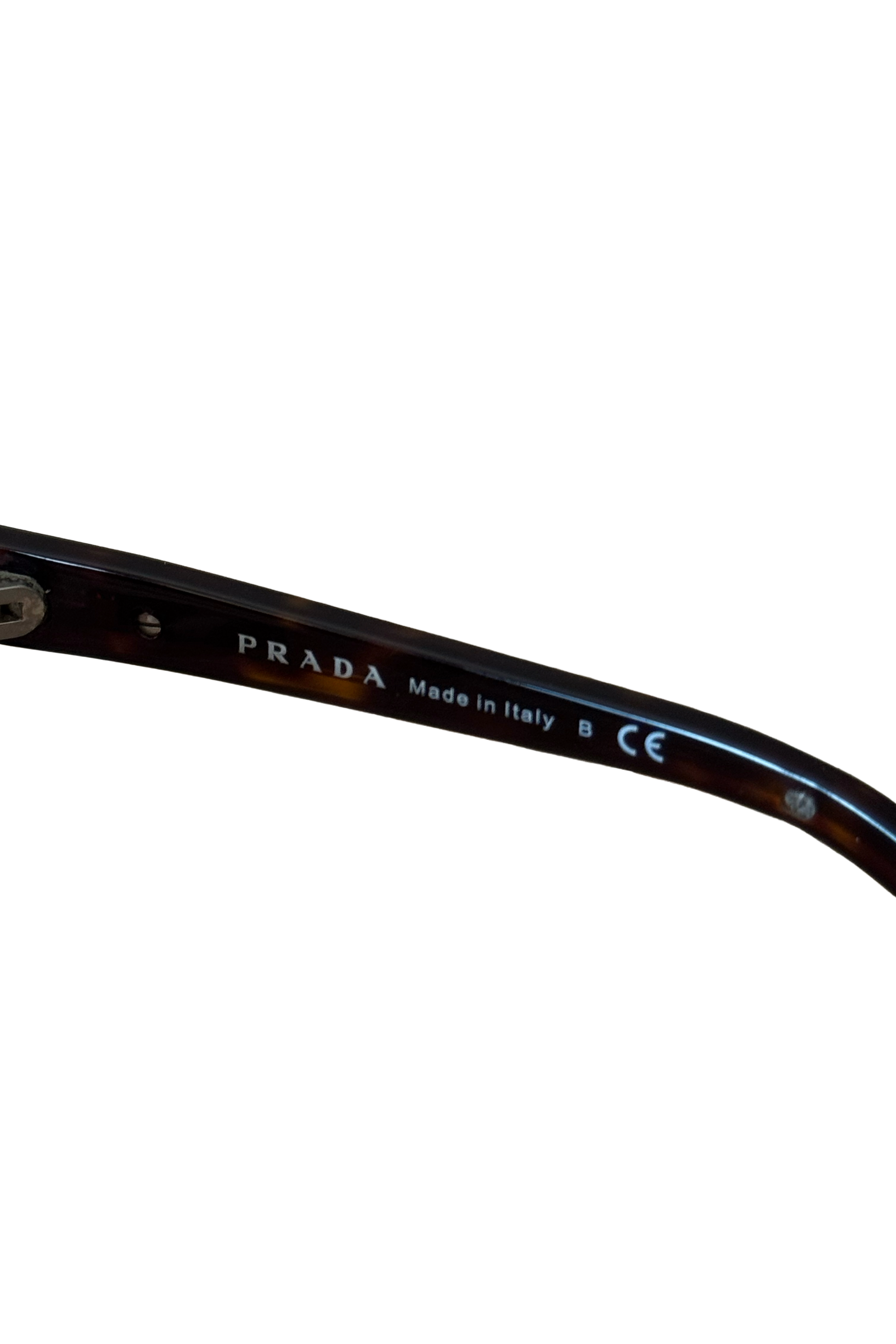 Prada oversized sunglasses in a chic square design, crafted from tortoise acetate with silver-tone logo details. In excellent condition, they offer timeless style and functionality.