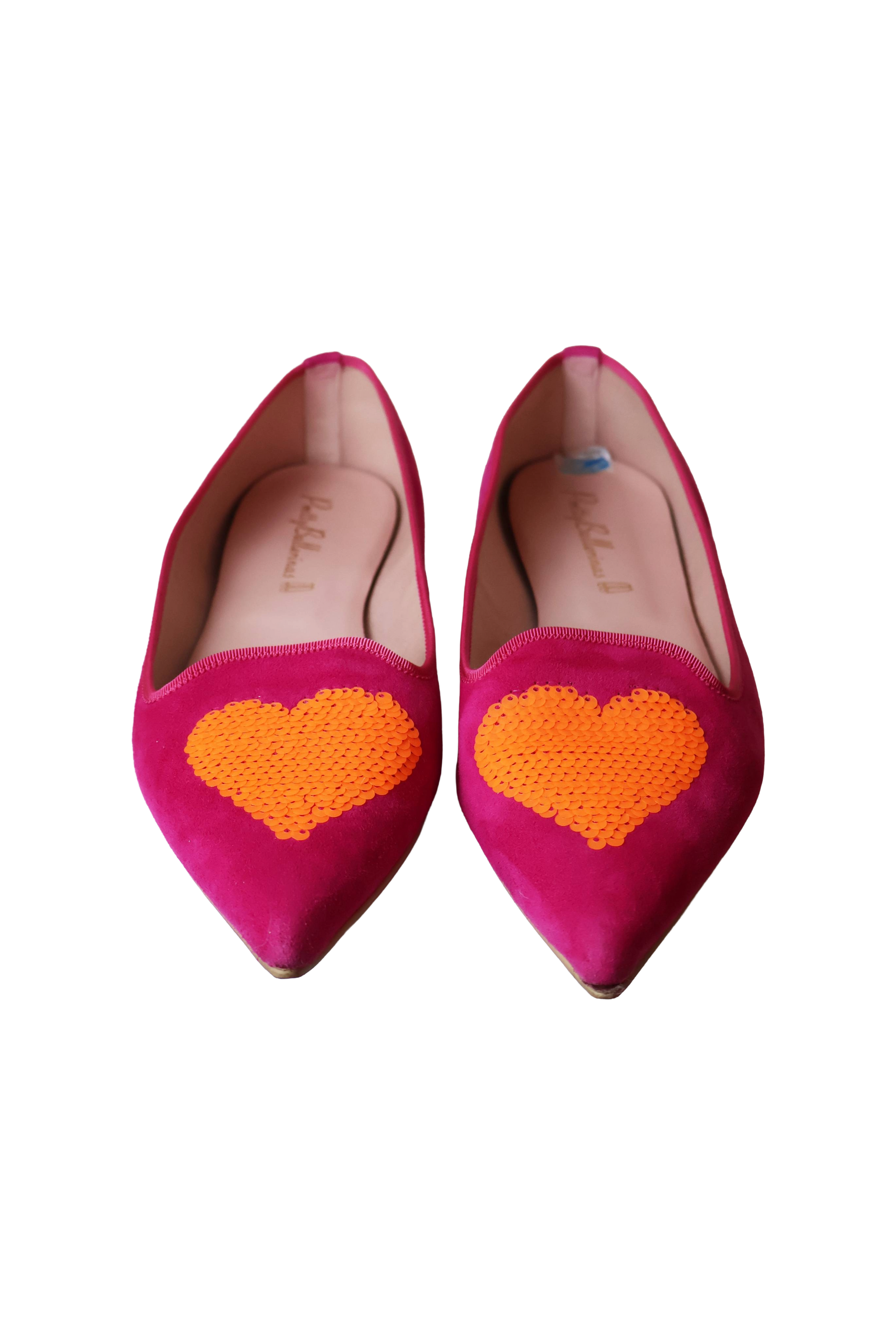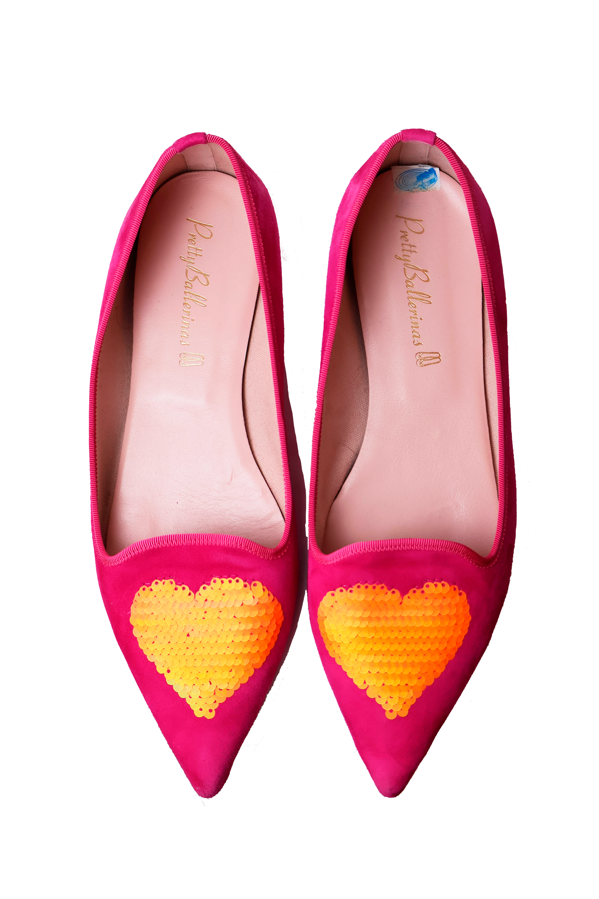Soft, feminine and timeless — these pink suede ballet flats by Pretty Ballerinas feature a pointed toe and a charming heart-shaped detail at the tip. A chic and romantic touch for any look.