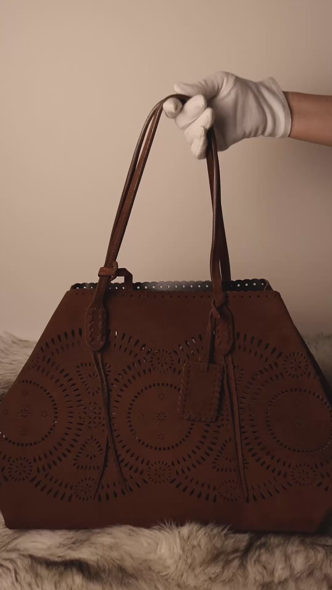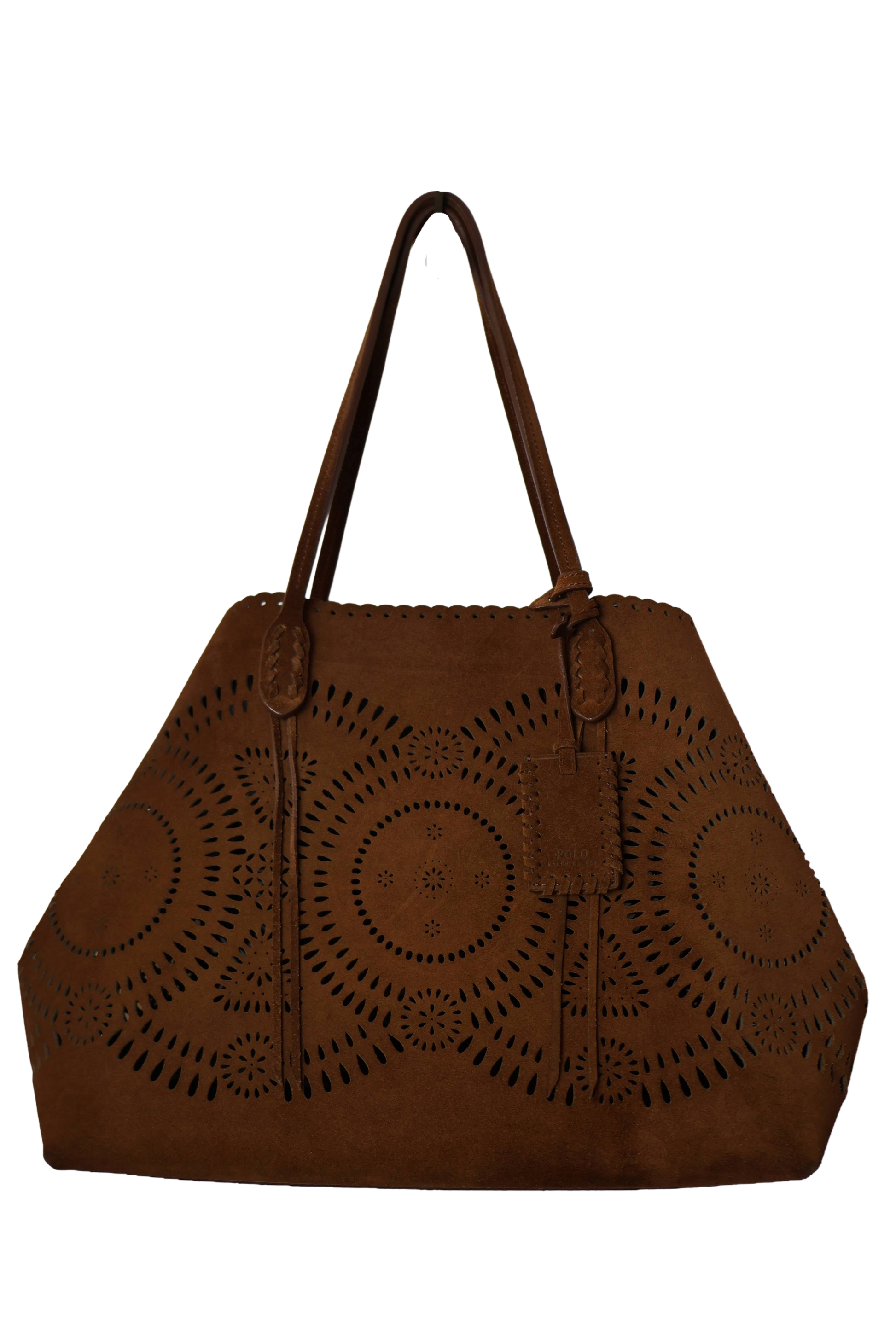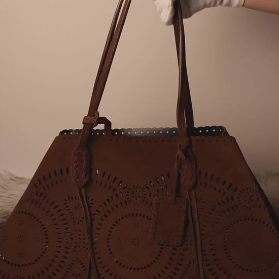 Ralph Lauren Shoulder Bag crafted in soft brown suede with gold-tone hardware. Its spacious silhouette (46 x 31 x 16 cm, L x H x W) makes it both practical and refined, ideal for everyday elegance. In very good condition, this timeless piece brings together versatility and signature Ralph Lauren sophistication.