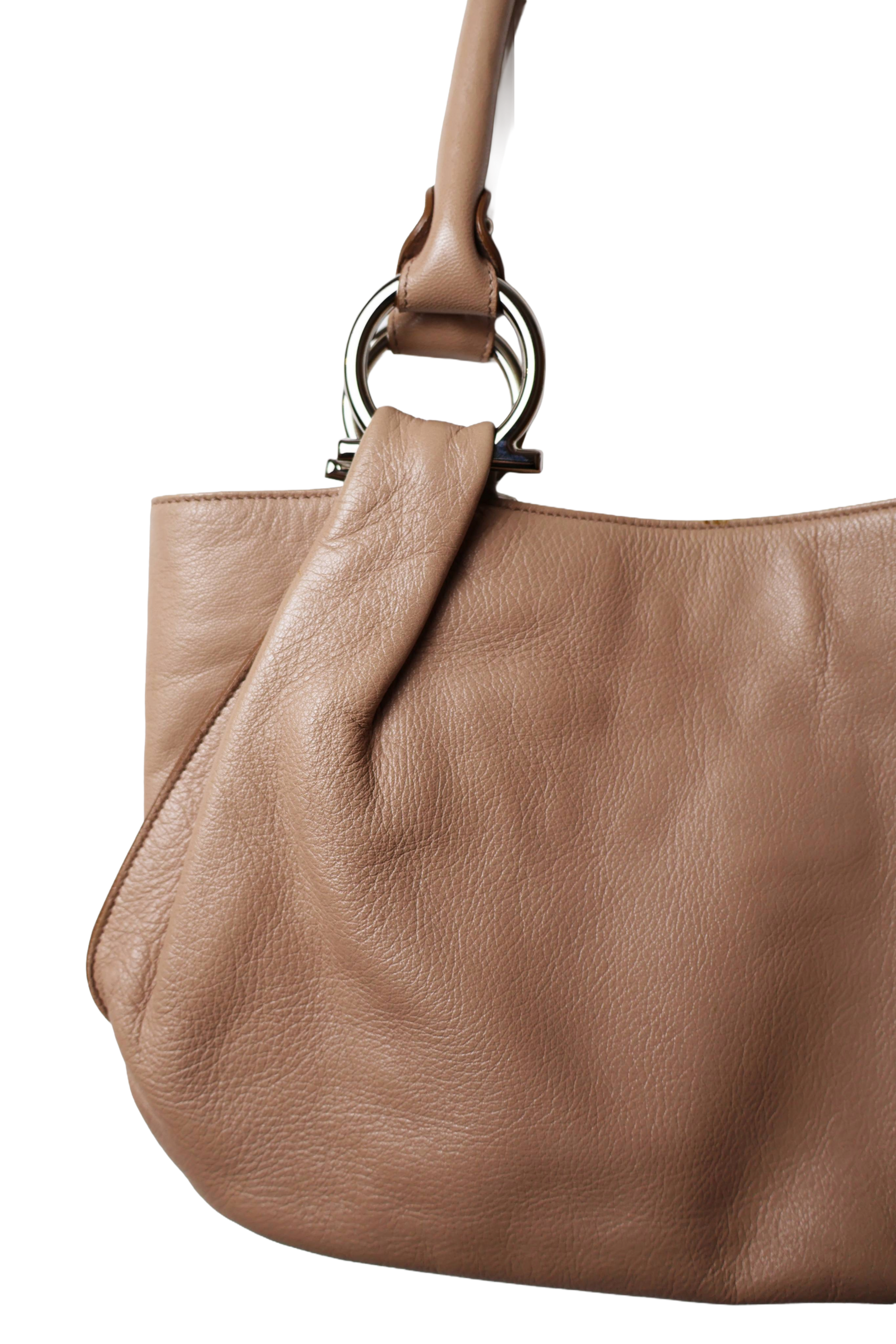 A refined and spacious piece, this Salvatore Ferragamo shoulder bag combines timeless Italian craftsmanship with understated elegance. The soft camel leather with warm undertones pairs beautifully with silver hardware, making it a versatile accessory for both day and evening wear. In excellent condition, this piece is ready to elevate your collection.