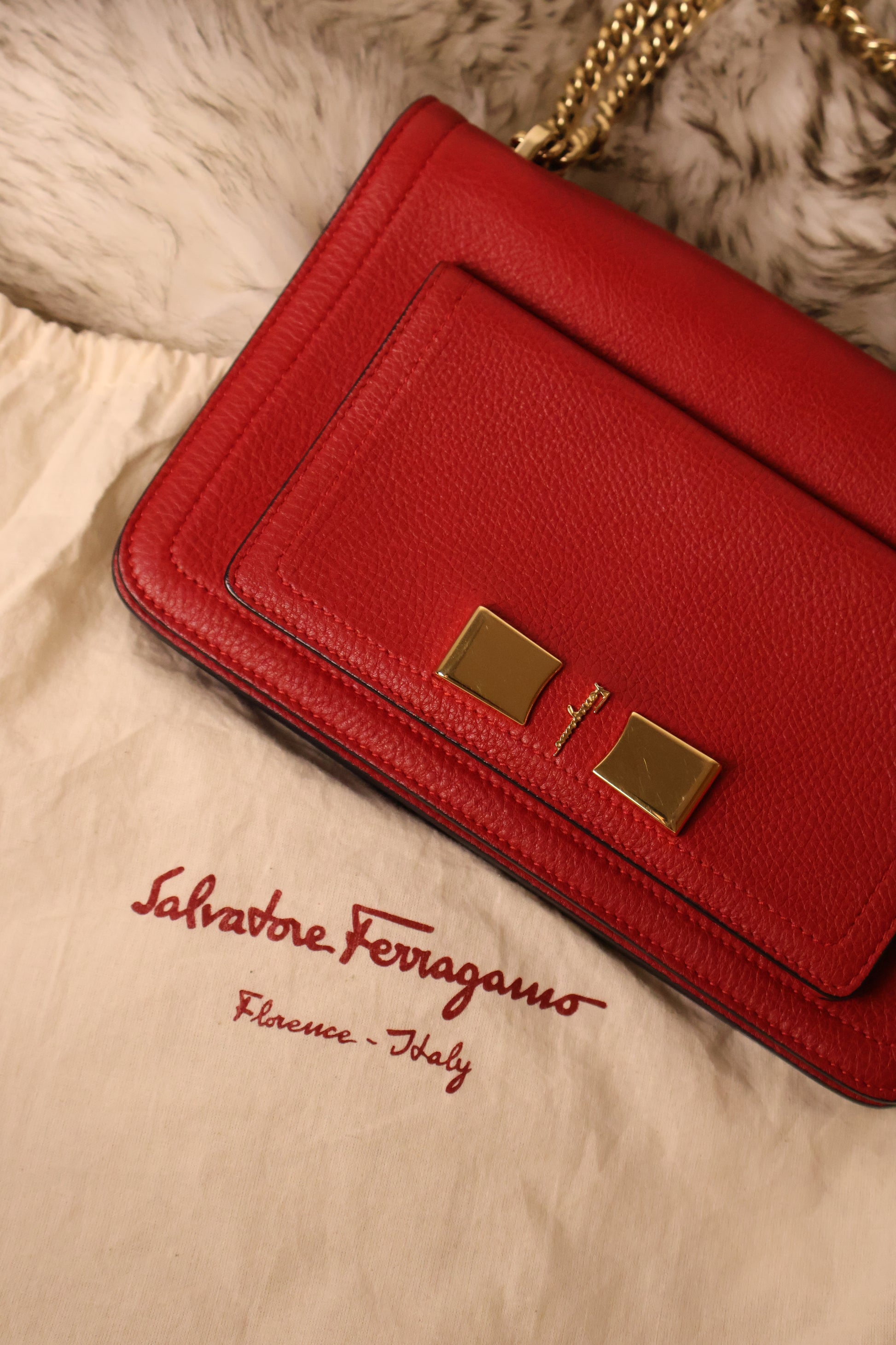 Crafted from smooth red leather and finished with gold-tone hardware, this Salvatore Ferragamo bag offers a chic and versatile design that can be worn on the shoulder or as a crossbody. In excellent condition, it retains its structure and elegant look.